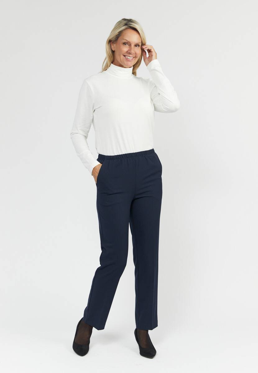 Beskrivelse Pen og behagelig bukse med press og strikk i livet. Lett å ta av og på. Med skråskjærte frontlommer. Model SOFIE fra Brandtex. Benlengde: kort 74 cm. Farge: mørk sand 64% polyester 32% viscose 4% elasthan Anbefalt fra leverandør: 30 grader vask Vi har god erfaring med institusjonsvask på disse. |