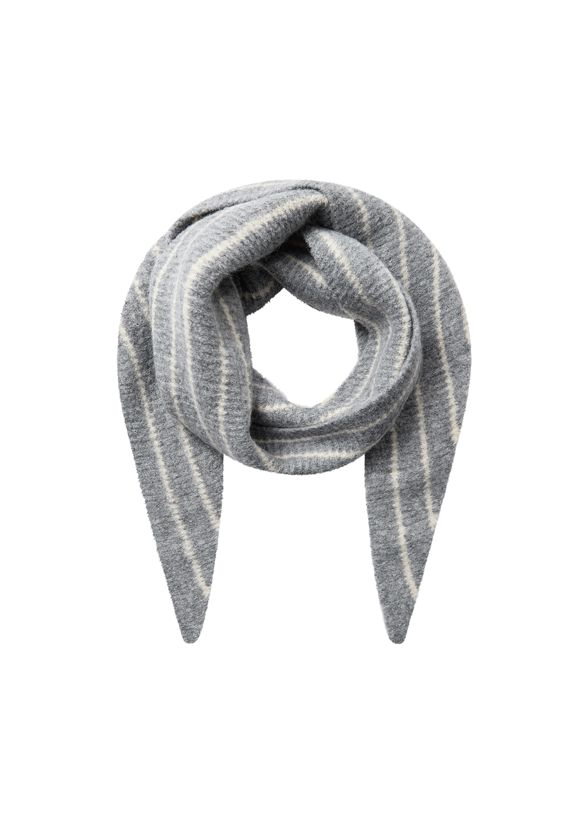 Et skjerf i stripete grå og offwhite ,som luner og varmer på kalde dager.